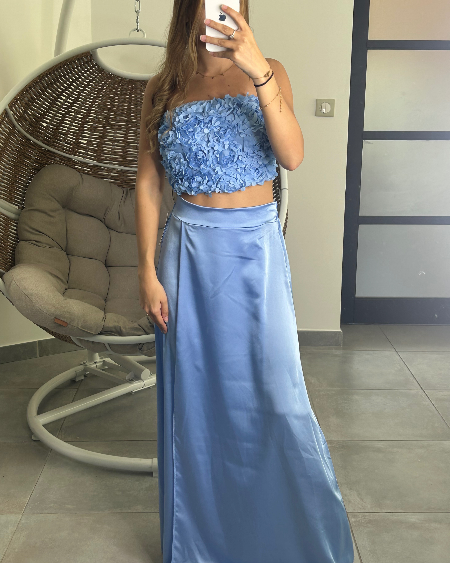 Ensemble haut et jupe bleu